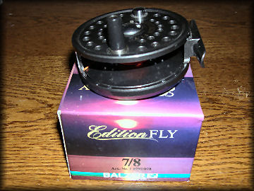 Ich bin eher zufällig in den Besitz einer Fliegenrolle gekommen, die aus dem Programm der Firma Balzer stammt. Es handelt sich dabei um das Modell "Edition Fly 7/8". Die Normalkern-Rolle ist in klassischem Design gehalten und weist eine dunkelbraune Metalliclackierung / Pulverbeschichtung auf.