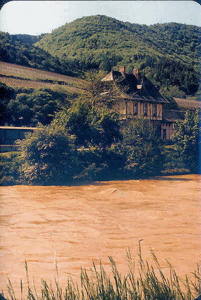 Ahrhochwasser in Mayschoß im Mai 1984 Die Ahr in Mayschoß bei Niedrigwasser