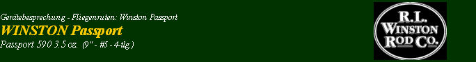 | Gerätetest Fliegenrute Winston Passport 9' #5 (Passport 590 3.5 oz.) | |||||||||||||||||||
