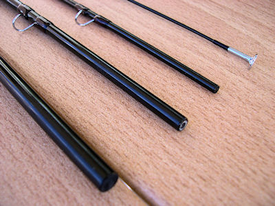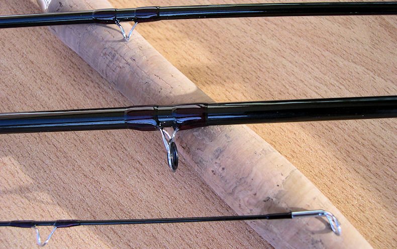 Der griffwärts wirkende und sehr schöne Stahlrollenhalter mit Einfachmuttertechnik und Edelholzspacer hält jedwede, zur Rute passende Fliegenrolle sicher und zuverlässig und ist durch die Oberflächenvergütung korrosionsbeständig. Er bietet genug Reserven für die Aufnahme eines jeden gängigen Rollenfußes. Der Schubring des Rollenhalters ist bei der Passport allerdings nicht gegen seitliche Verdrehung gesichert. Zusammengesteckt wird die Passport mit sehr gut passenden, die Einzelteile sicher zusammenhaltenden, jedoch lackierten Überschubverbindungen. Punktmarkierungen, die das schnelle Ausrichten beim Zusammenstecken der Rutenteile erleichtern, sucht man jedoch vergeblich. Leider gibt es keine Hülsen, damit die weiblichen Teile der passgenauen Steckverbindung nicht mit der Zeit verschmutzen. | ||||||||||||||||||
